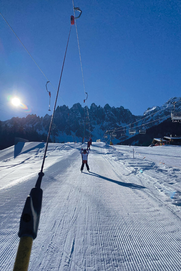 For those who love having a full skiing experience, we propose a course that can be arranged on agreement with the instructor (for children after agreement of parents). On this course you can follow the pistes of the Dolomites (Tour of the Peaks, Tour of the 4 passes, Cortina, Plan de Corones, etc.) where stunning scenery will take your breath away and you will be able to try various typical dishes in lodges on the way.
